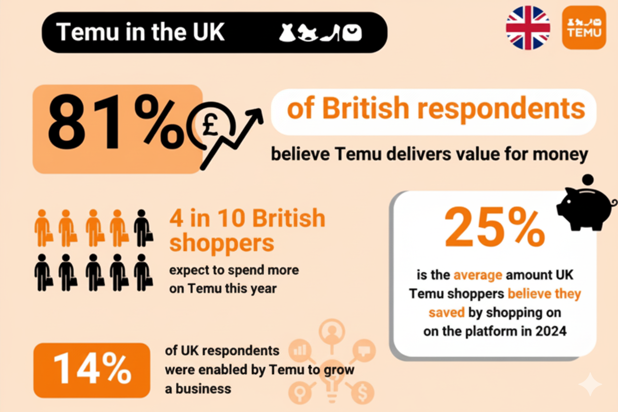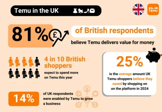 The move comes as 81% of UK respondents say Temu offers great value for money, and 4 in 10 shoppers plan to spend more on the platform this year. And with 14% of users crediting Temu for helping them grow their business, the expansion strengthens Temu’s “local-to-local” vision - empowering UK sellers.
